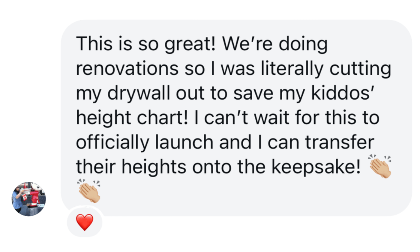 It’s actually inspired by a tape measure — but unlike the one in your toolbox, we designed it as a modern-day height chart for families.
